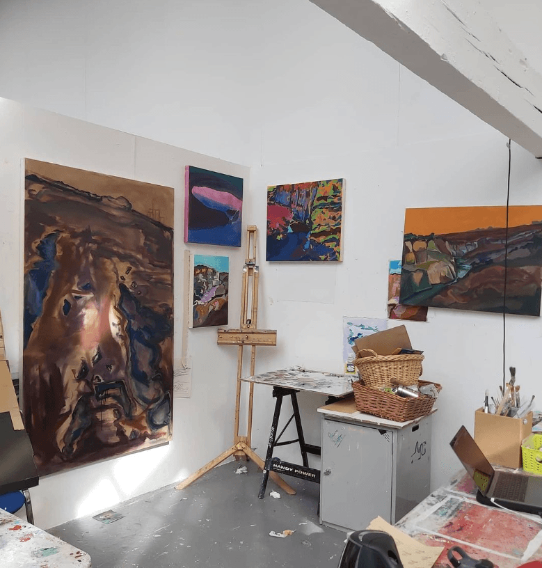 Previous work looks at the aesthetics of Irish boglands with particular interest in how the landscape holds onto the trauma of its past.Often using bright and seemingly unnatural colours to depict the ordinarily dull scenes. These paintings possess an impermanent, ephemeral quality and evoke a visceral response. Teetering between abstract and representative, your eyes travel across and through her paintings to suck you into the landscape.
